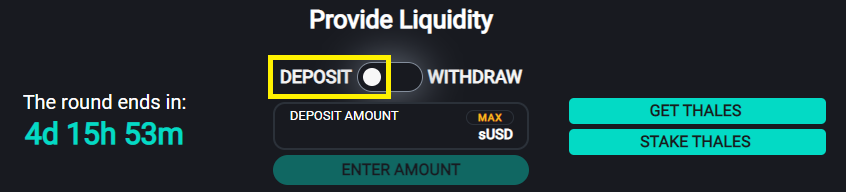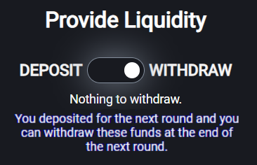 The time until the current round ends is listed on the left. Once the round ends any deposits made during the previous round will be added to the AMM.