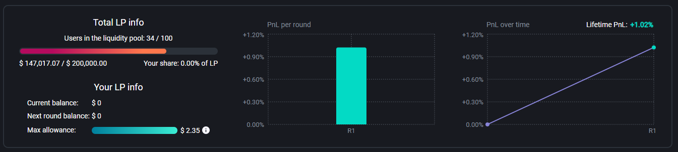 When a round ends, the AMM's performance from all markets in that round is summed up, and allocated to all liquidity providers proportional to their share of the pool.
